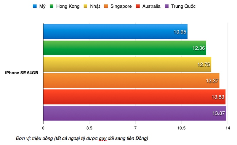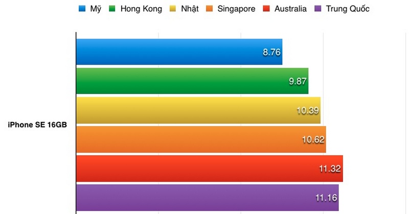 Apple bắt đầu nhận đặt hàng iPhone SE kể từ ngày 24/3 và sẽ giao bán máy kể từ 31/3 tại Mỹ bao gồm cả các thị trường khác quanh Việt Nam như Singapore, Nhật, Hồng Kong, Trung Quốc. Dưới đây là bảng so sánh giá bán tại các nước và đã được đổi sang tiền VNĐ.